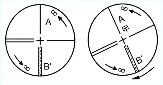 Fail: If Point A′ deviates from the vertical hair (as shown in the right figure), the crosshairs are tilted, and the photo reticle must be calibrated.